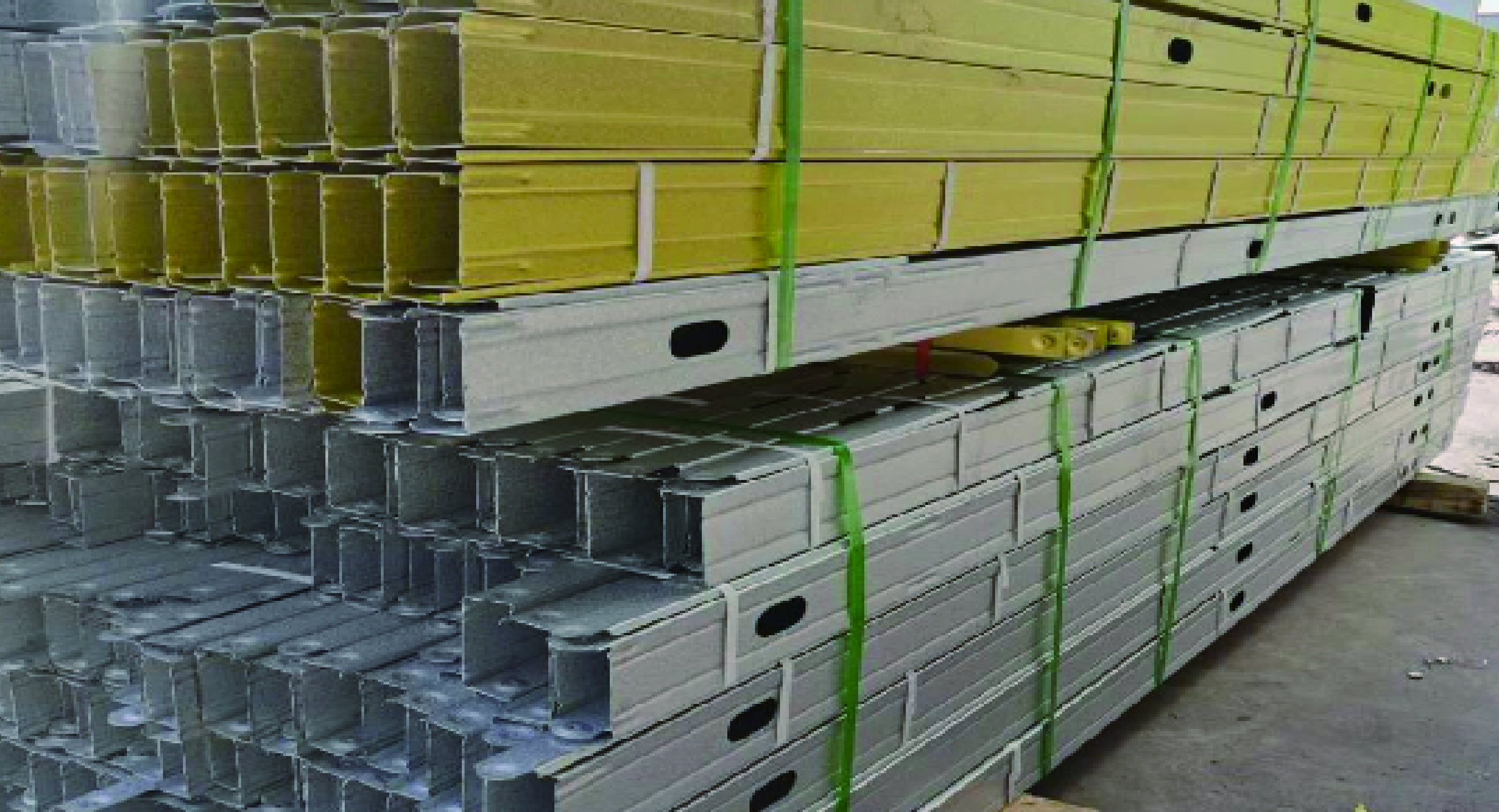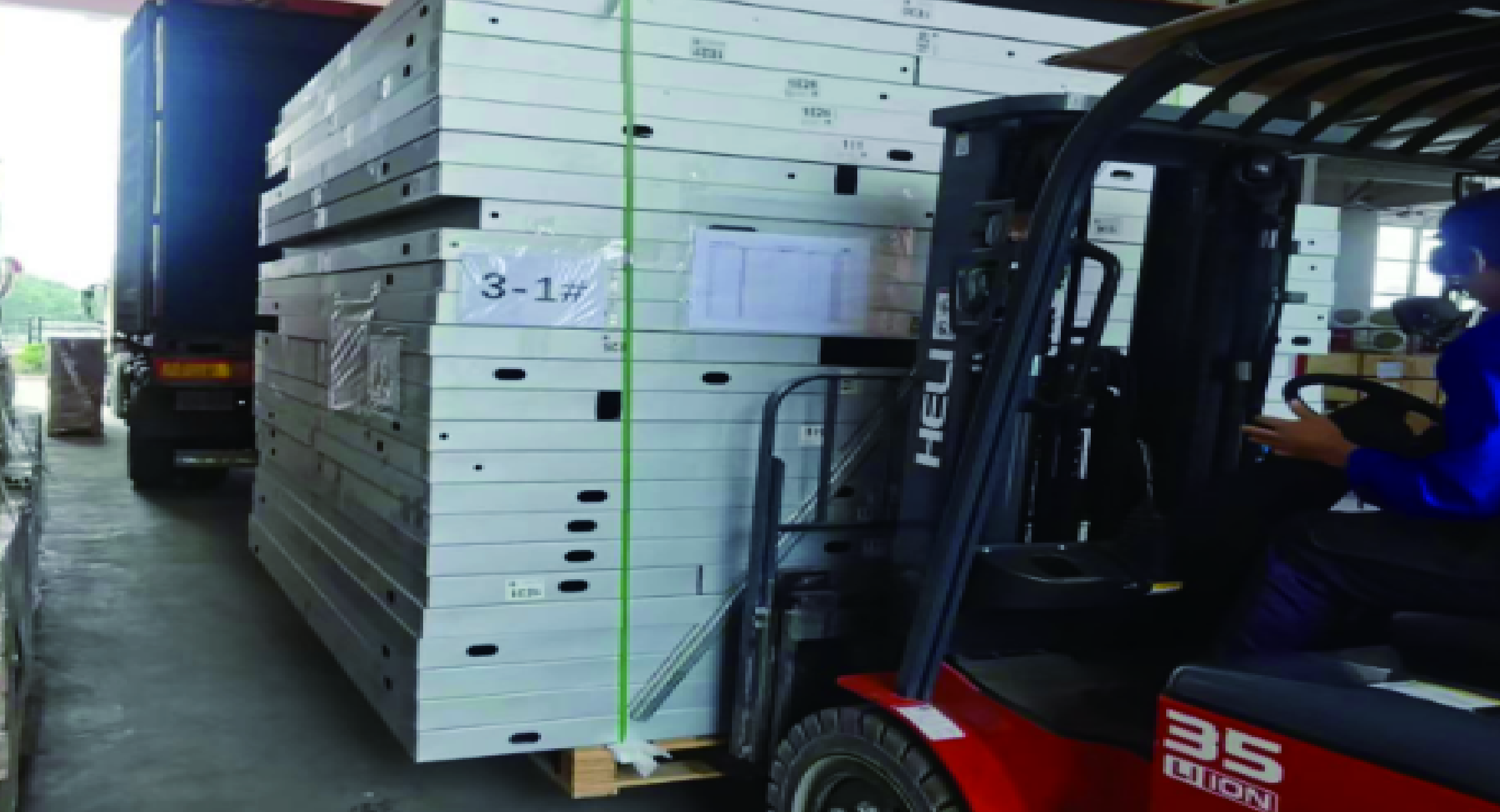 Packaging of building modules to ensure safety and integrity during transportation, ready for delivery to the construction site.