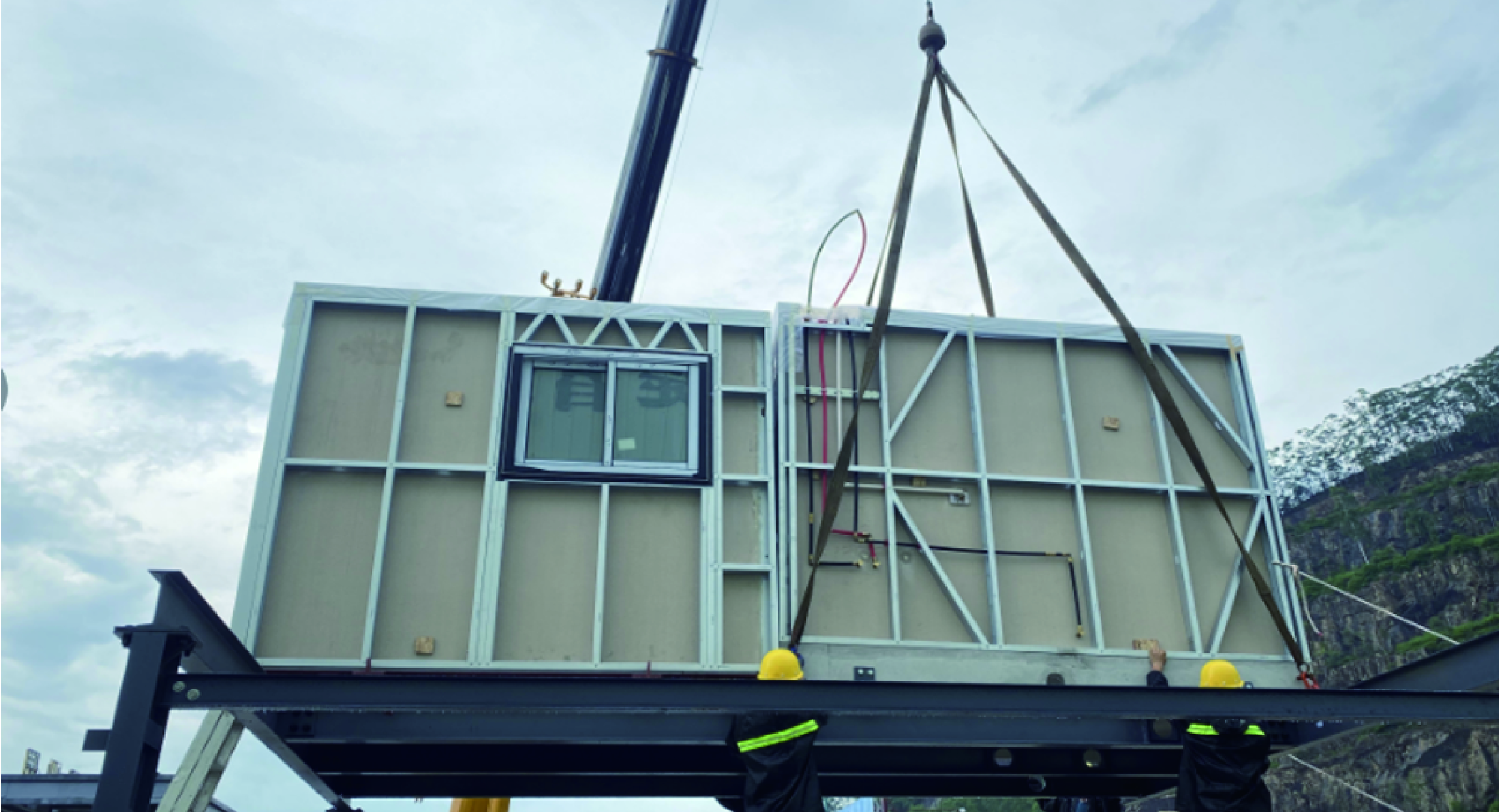 Production of building modules in the factory, ensuring efficient manufacturing processes and precise modular construction.